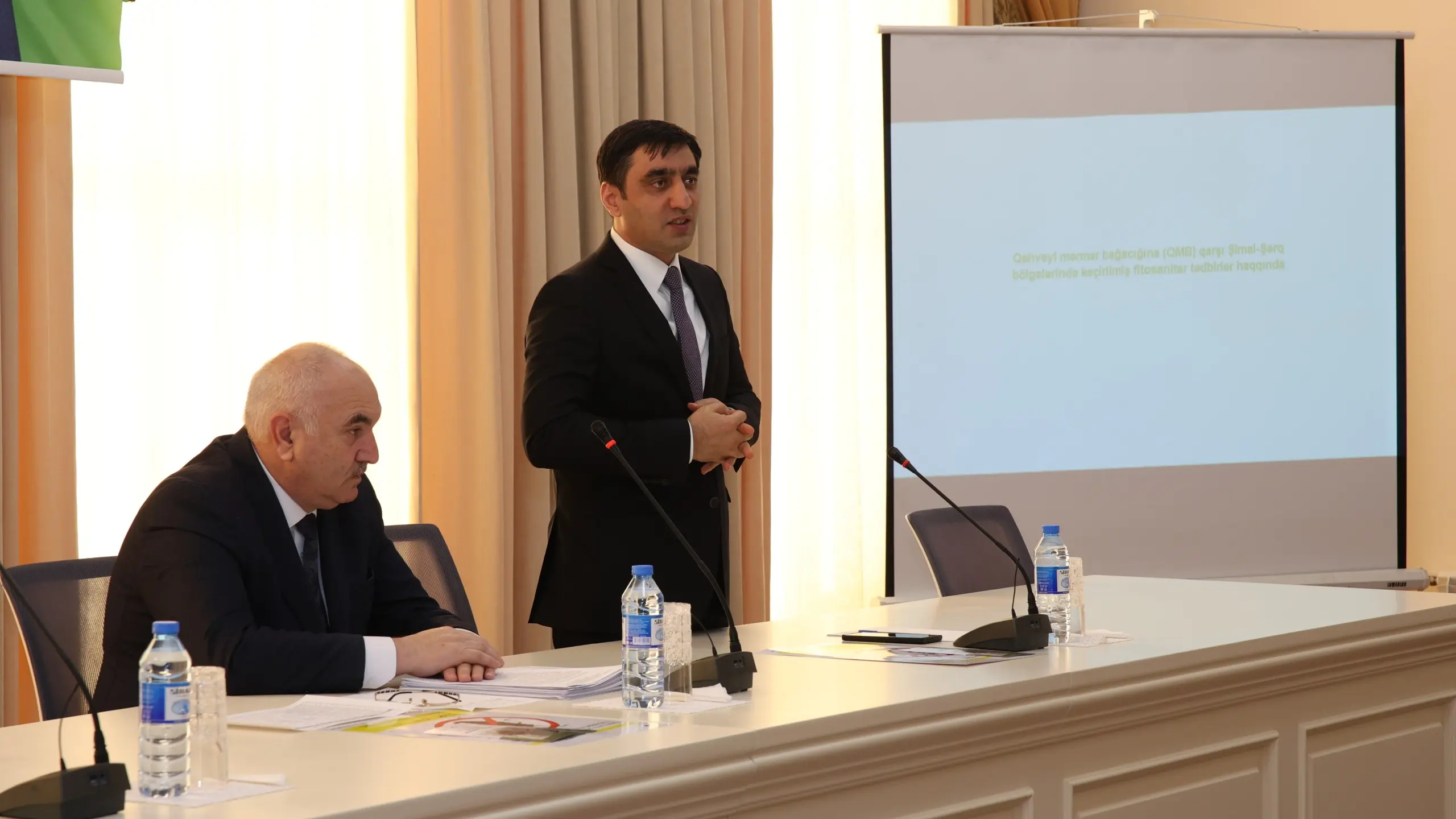 Aqrar Xidmətlər Agentliyinin sədri Sərdar Hacıyev tədbirin əhəmiyyətindən danışaraq görülən işlər və qarşıdakı vəzifələrlə bağlı ətraflı məlumat verib. Bildirib ki, ötən ilin oktyabr ayından bugünədək şimal-şərq bölgəsində qəhvəyi mərmər bağacığına qarşı 122 kənddə monitorinq keçirilib, 50 kənddə aşkarlanma müşahidə olunub, 4215 vətəndaş maarifləndirilib, 14 kənddə 123 ocaqda mübarizə tədbirləri aparılıb eləcə də ümumilikdə bölgə üzrə 2090 feromon tələlər quraşdırılıb. Yerli əhali və sahibkarlarla mütəmadi görüşlər keçirilir, onlara zərərvericinin yayılma yolları, təsərrüfatlara vurduğu zərərlər və effektiv mübarizə üsulları barədə ətraflı məlumat verilir. Həmçinin maarifləndirici bukletlər, videoçarxlar və bannerlər hazırlanaraq media və sosial şəbəkələrdə paylaşılır.