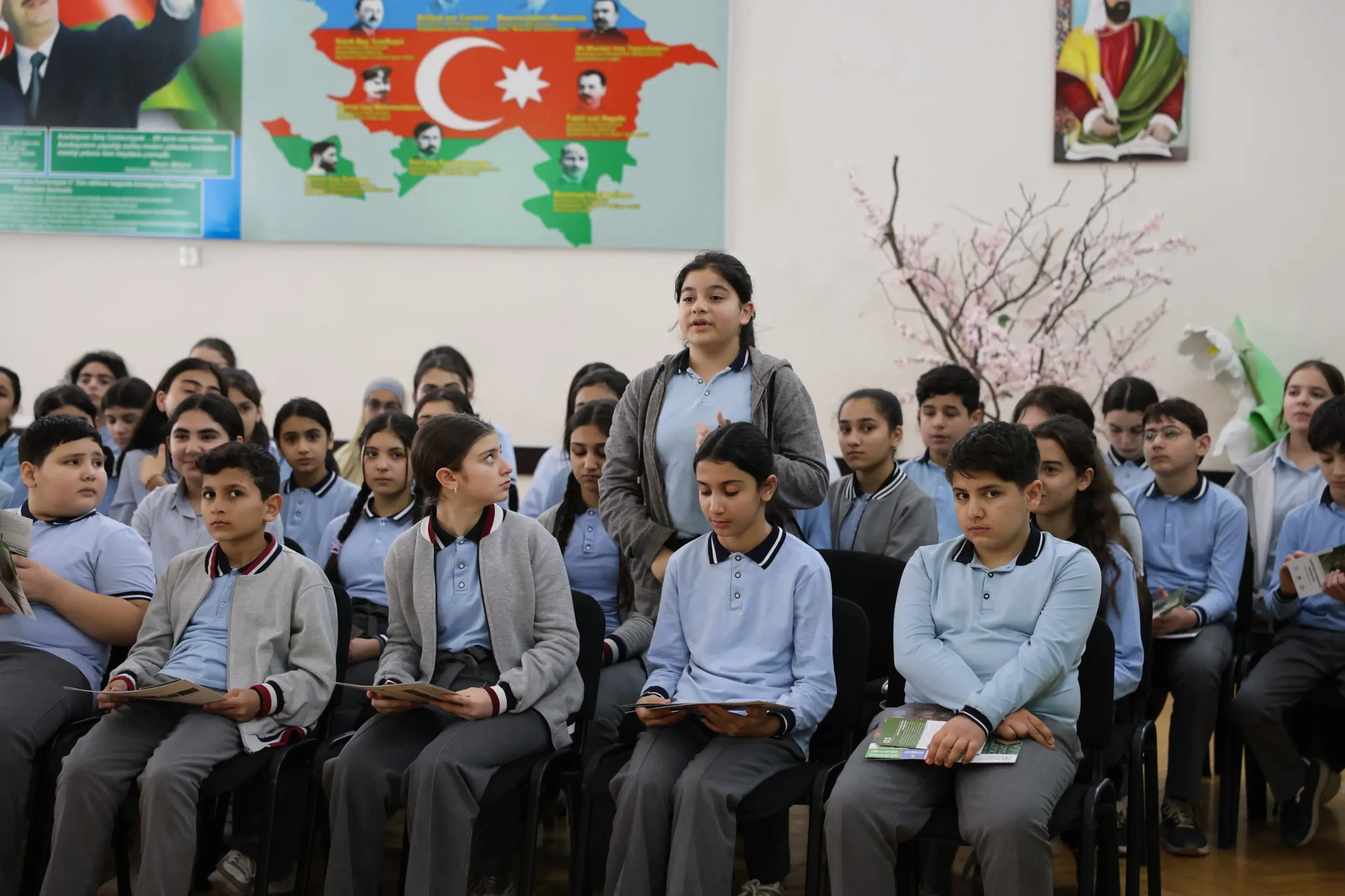Görüşün sonunda məktəblilərə maarifləndirici materiallar təqdim olunub, suallar cavablandırılıb.