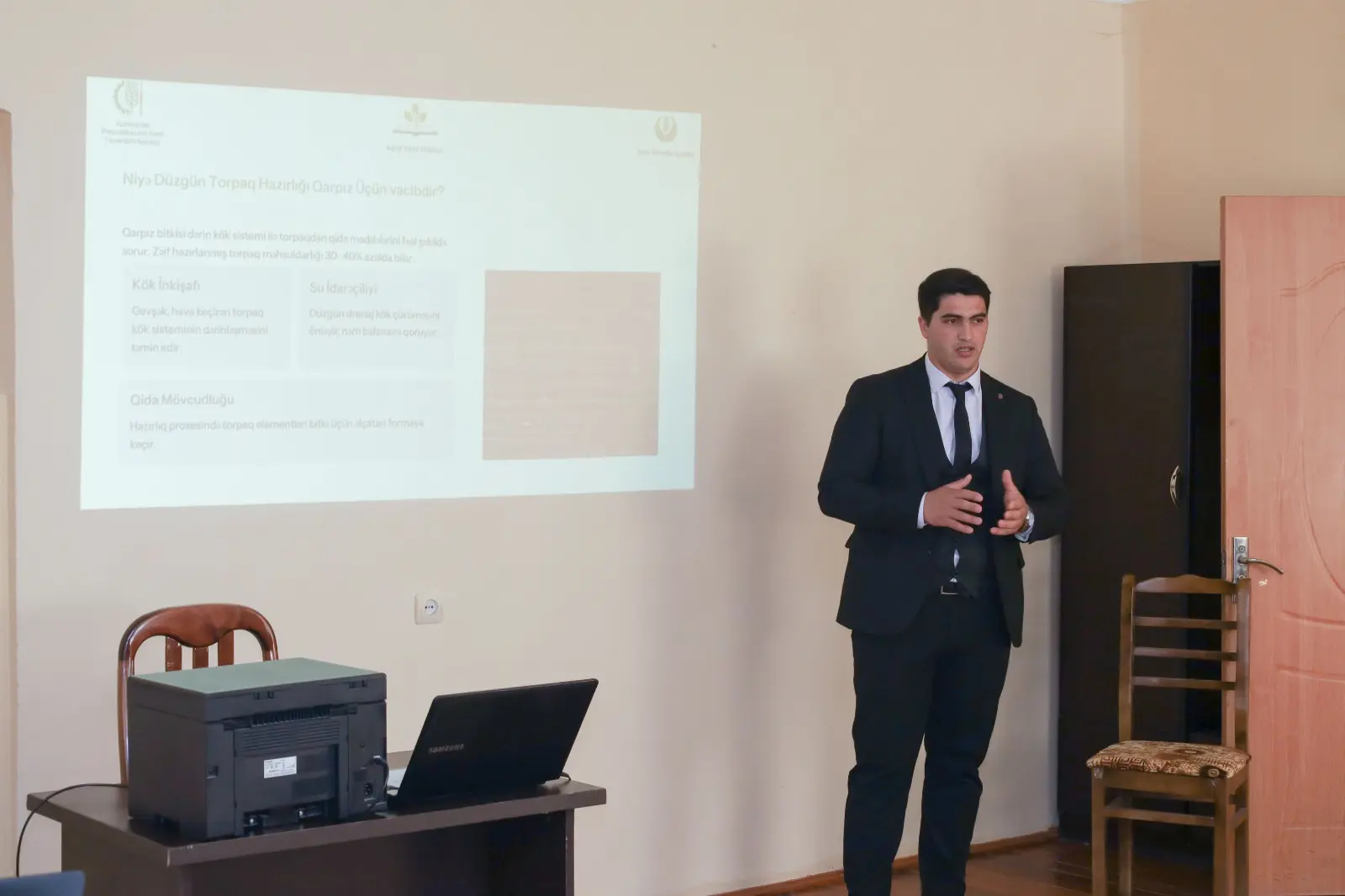Təlimlər zamanı iştirakçılara kənd təsərrüfatının prioritet sahələri üzrə həm nəzəri biliklər, həm də praktiki bacarıqlar təqdim olunub. Proqram çərçivəsində qarpız bitkisinin əkindən əvvəl torpağın hazırlanması, torpaq analizlərinin aparılması və nəticələrə əsasən optimal gübrələmə sxemlərinin seçilib tətbiqi barədə ətraflı məlumat verilib. Eyni zamanda çay plantasiyalarında aqrotexniki qulluq qaydaları, budama, suvarma, alaq otlarına qarşı mübarizə və torpağın münbitliyinin qorunması geniş şəkildə izah edilib. Bununla yanaşı, çay bitkisində rast gəlinən əsas xəstəlik və zərərvericilər, onların erkən aşkarlanması və inteqrir mübarizə üsulları haqqında da iştirakçılar ətraflı şəkildə məlumatlandırılıb.