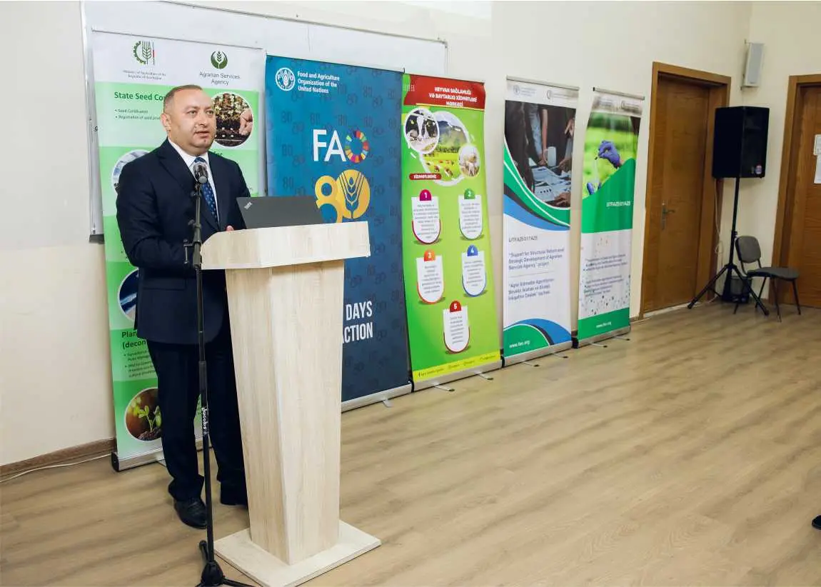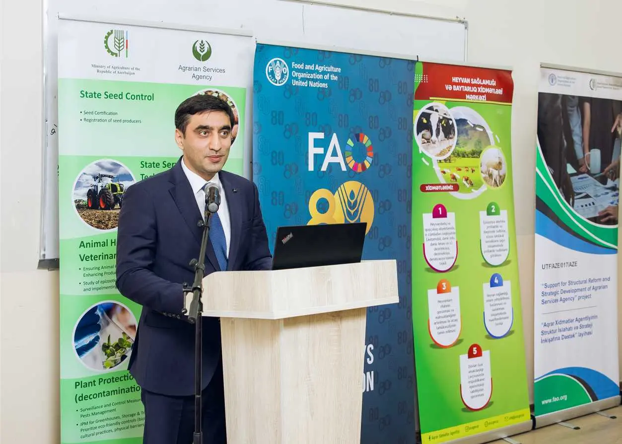 Azərbaycan Dövlət Aqrar Universitetində Kənd Təsərrüfatı Nazirliyi ilə FAO-nun birgə əməkdaşlığı çərçivəsində “Təhlükəsiz Qida üçün Heyvan Sağlamlığının Qorunması – Elm və Təcrübənin vəhdəti” mövzusunda tədbir həyata keçirilib.