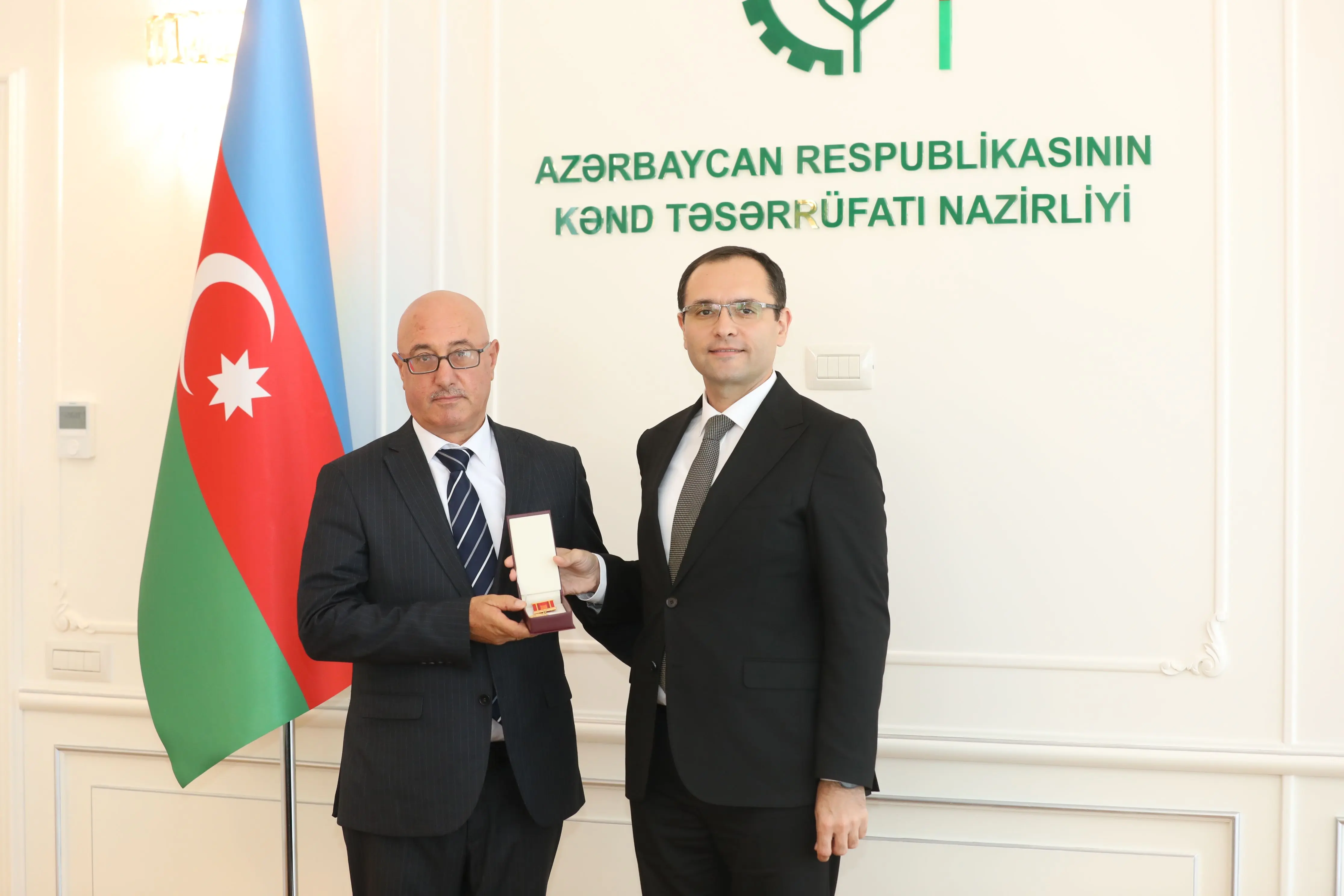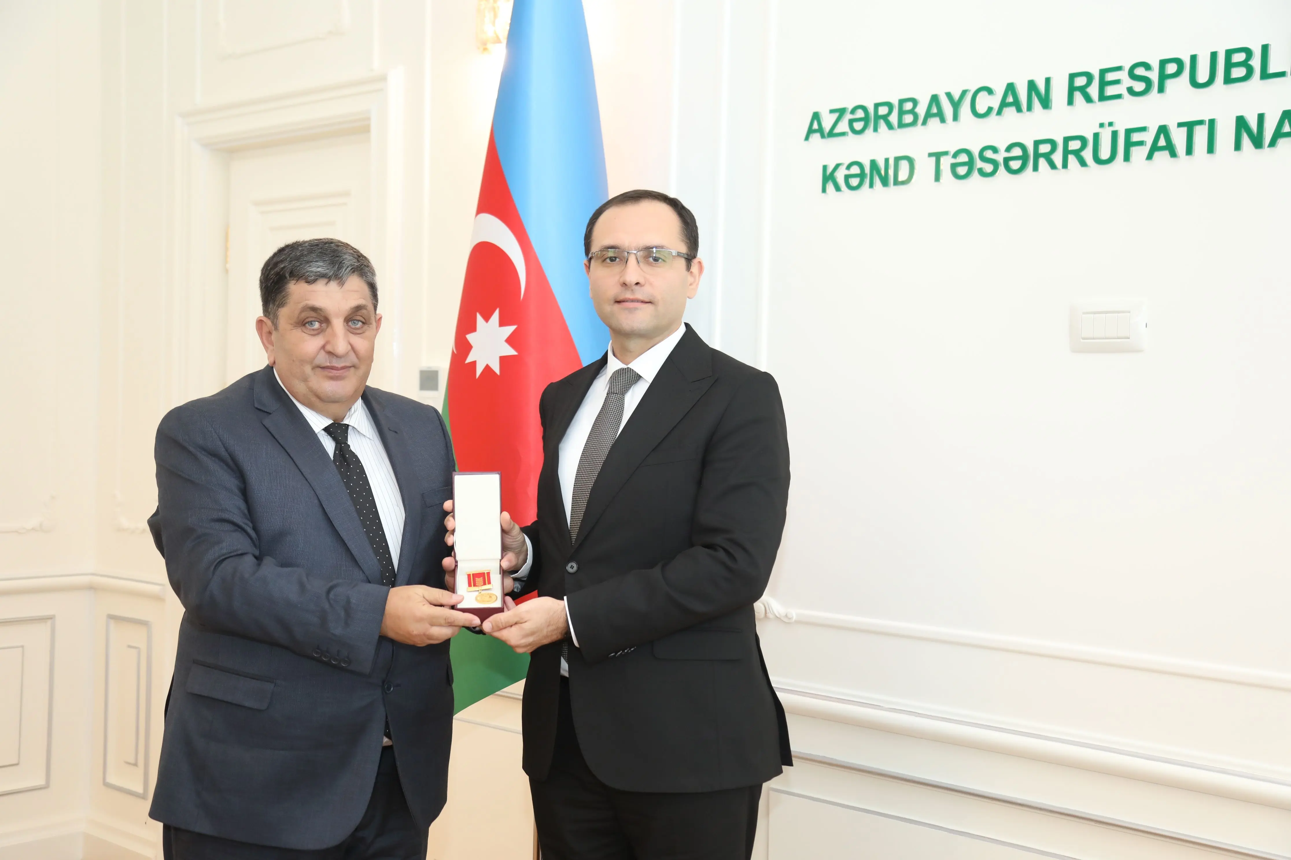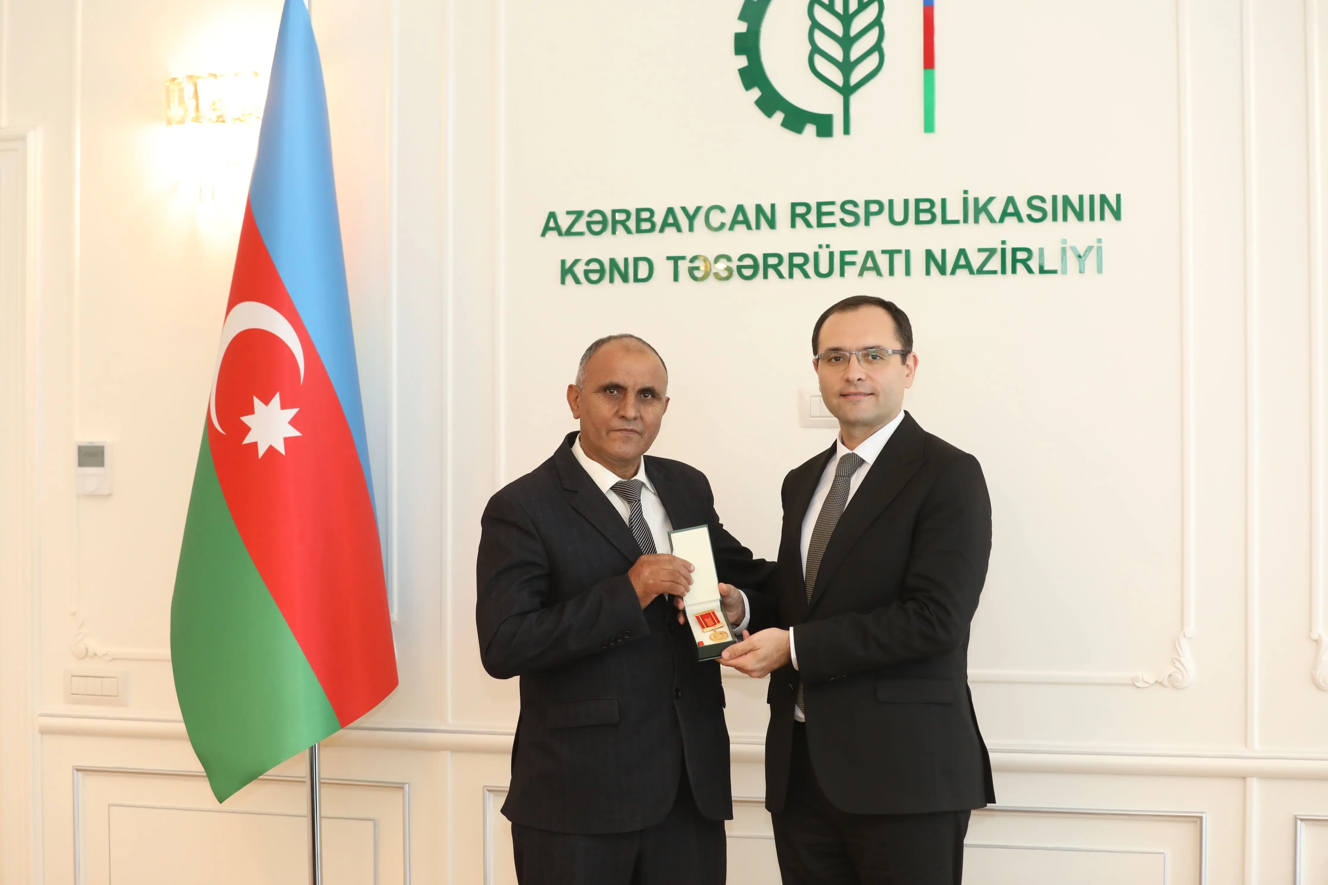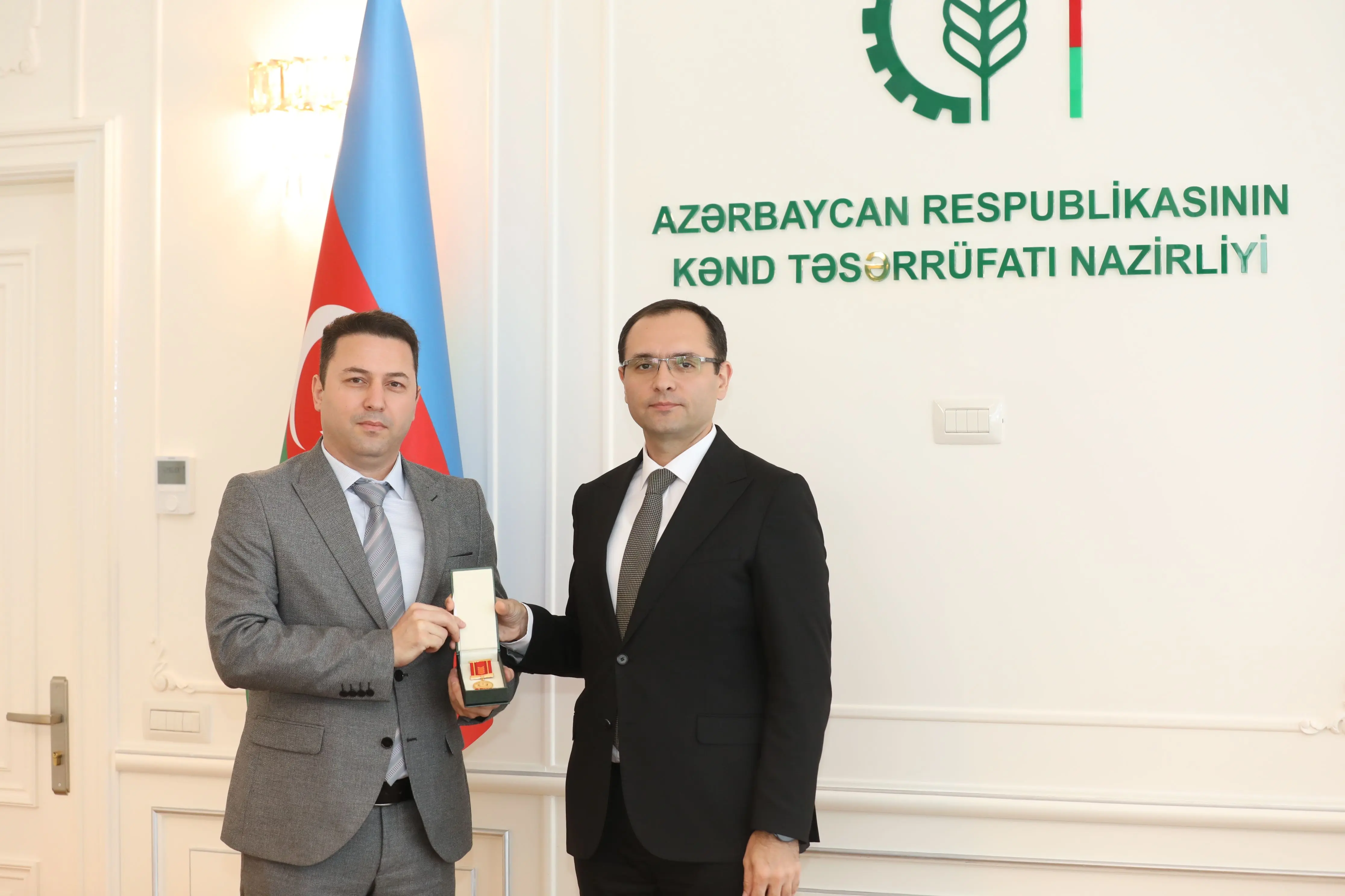 Azərbaycan Respublikası Prezidenti cənab İlham Əliyevin 2025-ci il 21 iyun tarixli 632 nömrəli Sərəncamına əsasən dövlət qulluğunda səmərəli fəaliyyətlərinə görə “Dövlət qulluğunda fərqlənməyə görə” medalı ilə təltif edilmiş Kənd Təsərrüfatı Nazirliyinin əməkdaşlarına medal və vəsiqələr təqdim edilib.