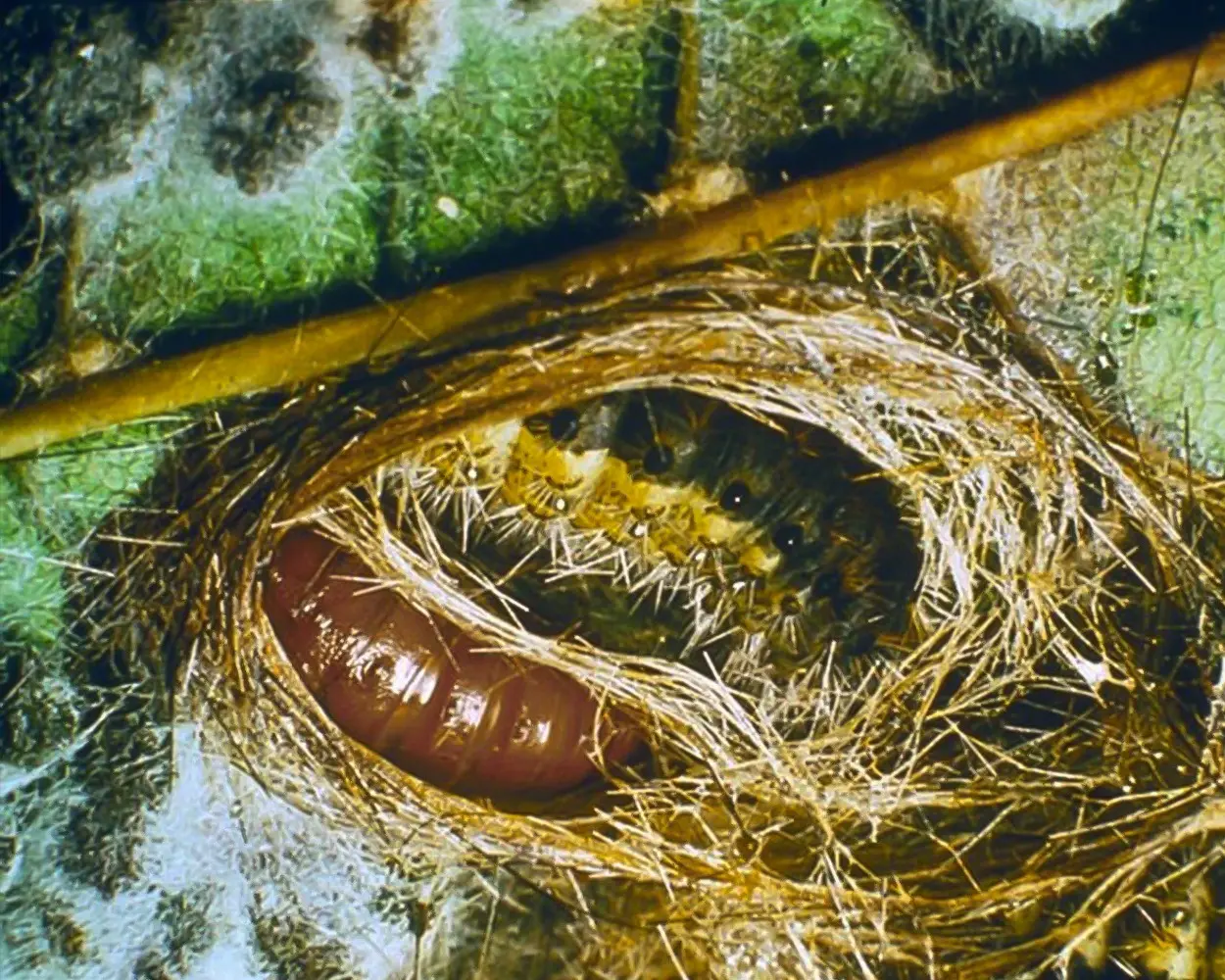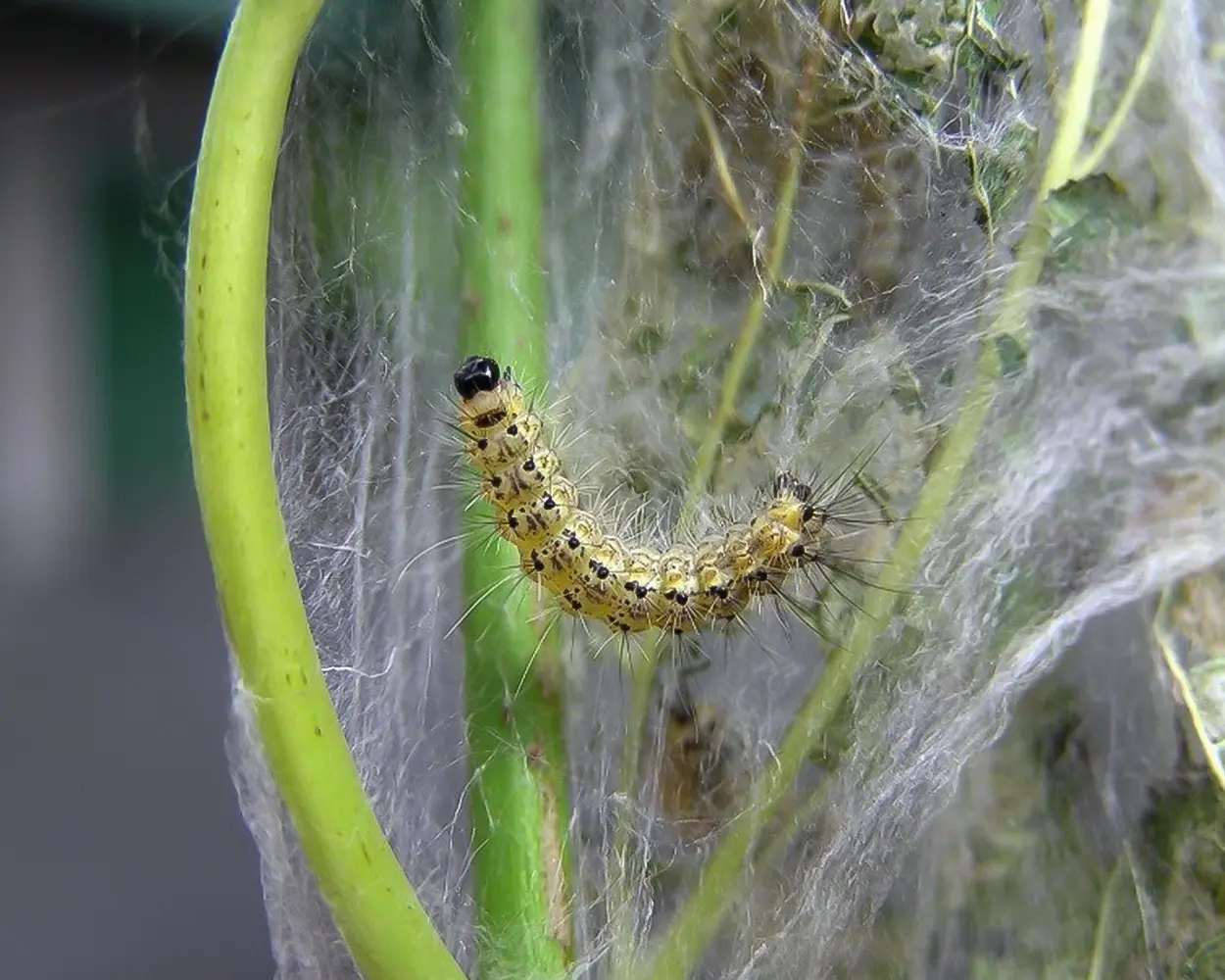 Tırtıllar adətən 6 bəzən isə 7-8 yaş mərhələsi keçirirlər. I–II yaşlarda tırtılların yuvası ağac çətirlərinin kənarında torla hörülmüş 1-2 yarpaqdan ibarət olur. V yaşa kimi tırtıllar kaloniya halında yaşayırlar və V yaşın sonlarına yaxın tor yuva 1-1,5 m ölçüyə qədər çatır. Bu yaşda tırtıllar qidalanmalarını davam etdirmək üçün tor yuvanı tərk edərək bütün bitki boyu yayılırlar.