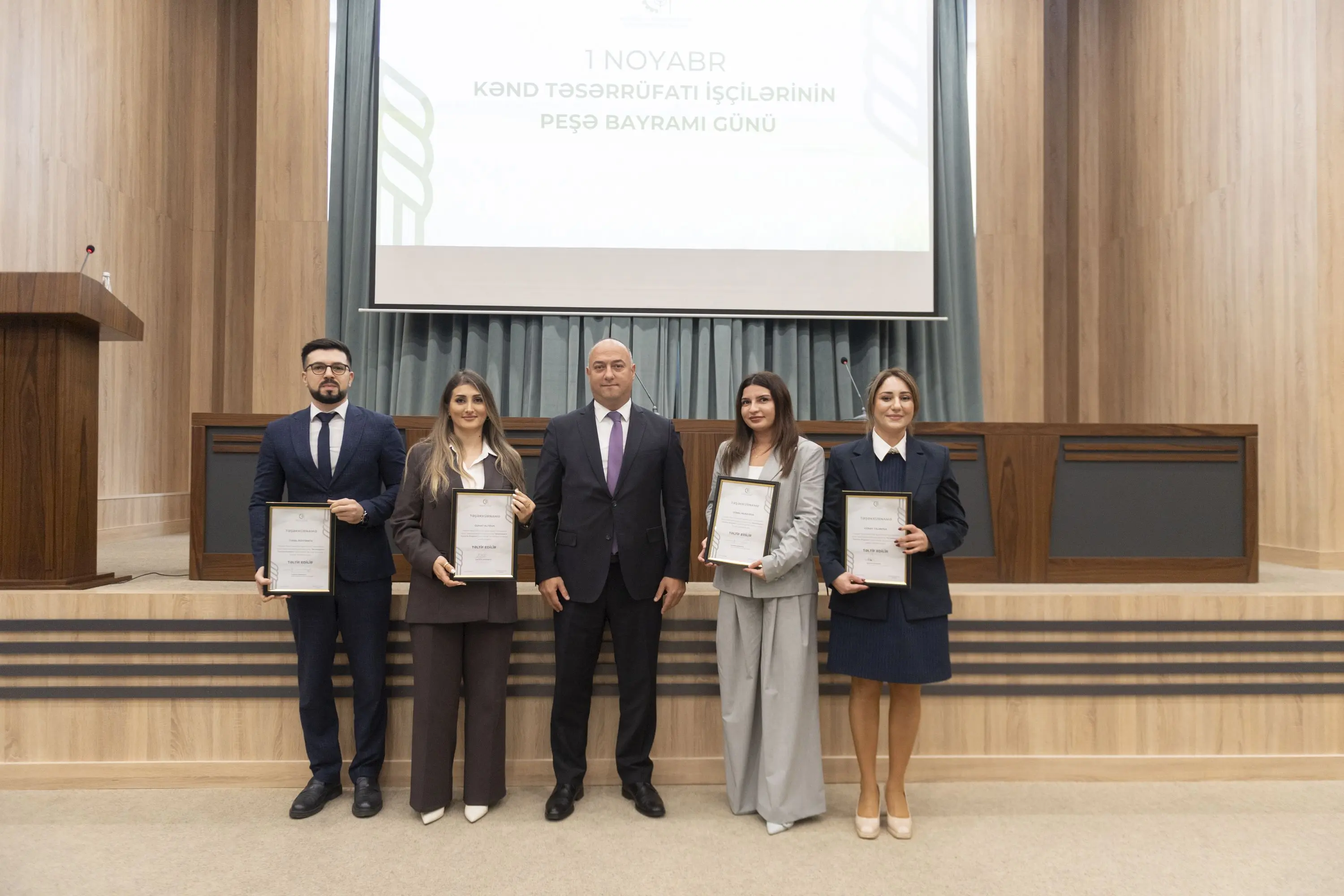 Kənd Təsərrüfatı Nazirliyində 1 noyabr – Kənd Təsərrüfatı İşçiləri Gününə həsr olunmuş təntənəli yığıncaq keçirilib. Azərbaycan Respublikasının Dövlət Himninin səsləndirilməsi ilə başlayan tədbirdə Ümummilli lider Heydər Əliyevin və Vətən uğrunda canından keçən qəhrəman şəhidlərimizin əziz xatirəsi bir dəqiqəlik sükutla yad edilib.