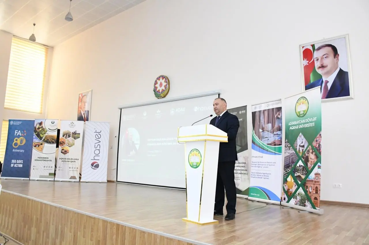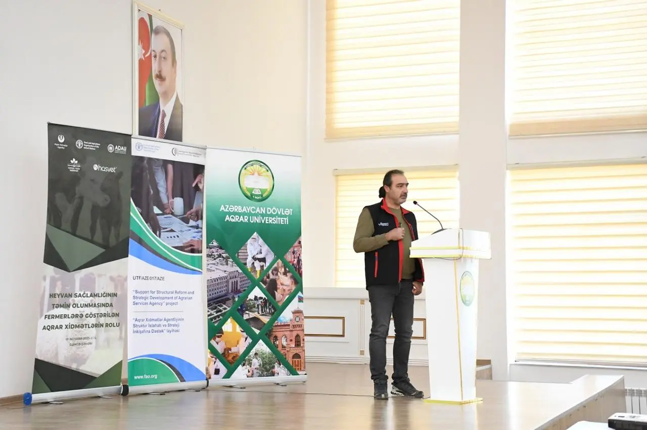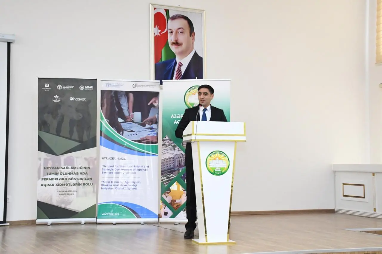 Aqrar Xidmətlər Agentliyinin (AXA) Aqrar Təlim Mərkəzi, Azərbaycan Dövlət Aqrar Universiteti (ADAU) ilə "Hasvet Baku" MMC-nin birgə təşkilatçılığı, BMT-nin Ərzaq və Kənd Təsərrüfatı Təşkilatının (FAO) dəstəyi ilə “Heyvan sağlamlığının təmin olunmasında fermerlərə göstərilən aqrar xidmətlərin rolu” mövzusunda keçirilən təlimlərin ilk günü uğurla başa çatıb.